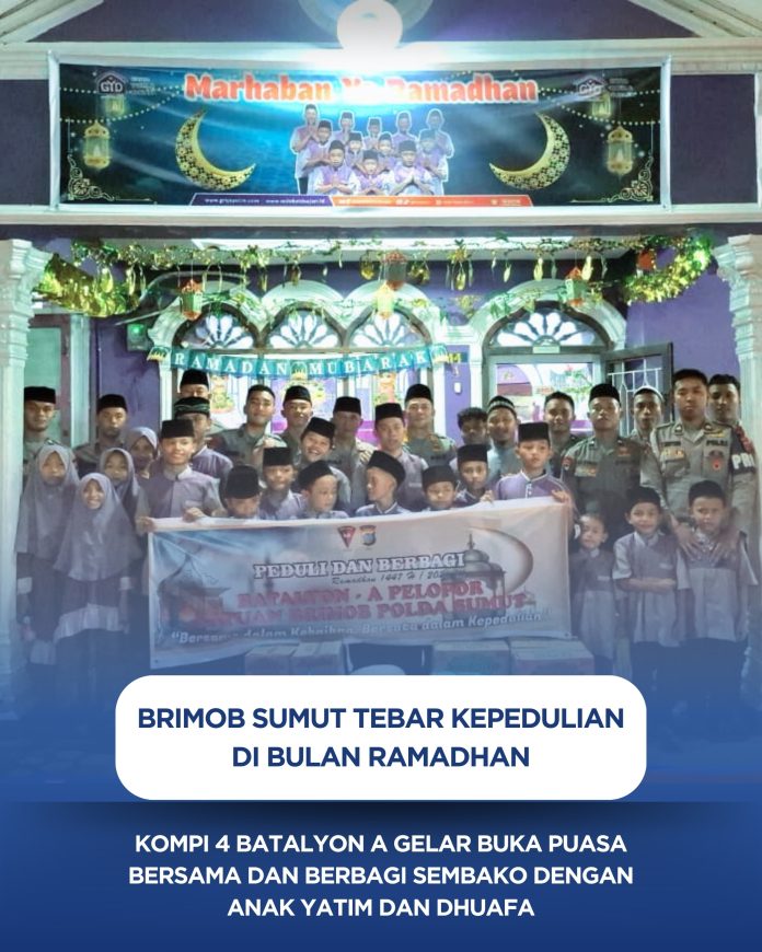 Brimob Sumut Tebar Kepedulian di Bulan Ramadhan, Kompi 4 Batalyon A Gelar Buka Puasa Bersama dan Berbagi Sembako dengan Anak Yatim dan Dhuafa